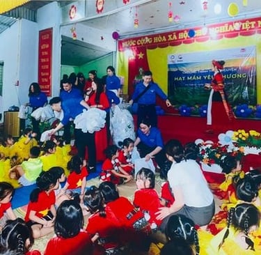 Chương trình thiện nguyện “Hạt mầm yêu thương” đã trao tặng cho Trường những trang thiết bị cần thiết phục vụ công tác giảng dạy gồm 02 tivi và 01 máy chiếu, trao tặng 28 suất học bổng cho các em thiếu nhi có hoàn cảnh khó khăn, khuyết tật và 380 suất quà cho toàn thể các em thiếu nhi tại 05 điểm trường thuộc Trường mầm non xã Tân Trịnh.